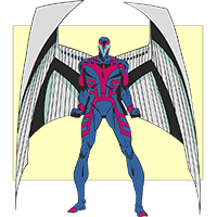 Known Superhuman Powers: Warren Worthington III is a mutant whose primary mutation manifests as a pair of large wings extending from his shoulder blades. These wings grant him natural powered flight and are supported by a modified physiology capable of sustaining aerial locomotion. Warren’s bones are partially hollow and his musculature, lungs, and cardiovascular system are highly adapted to support sustained flight.