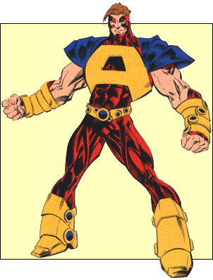 KNOWN SUPERHUMAN POWERS: Atlas possesses the ability to increase in size and mass anywhere from his normal height of 6 feet to his maximum limit of 60 feet. Controlling his size changes by an act of concentration, Atlas remains at a given stature until willfully change it. (Thus, he will not resume his normal size when rendered unconscious.) The growth process requires the rapid acquisition of body mass to maintain his proportionate shape. Since the source for this mass is not evident, it presumably derives from an extra-dimensional source. This extra-dimensional mass fortifies all of his cellular tissue, including bone and muscle, thus enabling him to support his increased weight. As he grows, his weight increases as a cube (a factor multiplied by itself by three times) to his height. Thus at his normal height of 6 feet, he weighs 220 pounds, while at his maximum height of 60 feet (10 time his normal height), his weight increases to 220,000 pounds (10 X 10 X 10 X 220 pounds). At his maximum height, he is at his maximum level of strength.