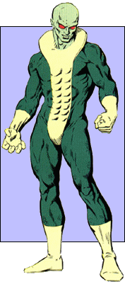 Known Superhuman Powers: The Basilisk's major power was the bodily generator of microwave-related energy, which he could emit at will through his eyes. He could thus create a force beam that heated up an intense vortex of air beneath him. This force beam was capable of exerting a force of 1,500 pounds per square inch. This energy was sufficient to lift him into the air simply by training it on the ground. The Basilisk was able to propel himself a maximum of 400 feet into the air with a single force blast. At first, a continuous force blast was necessary to keep him aloft; later, after gaining further power from the Omega-Stone, the Basilisk appeared to be able to levitate himself without utilizing the force blast to do so. Through his force blasts the Basilisk could propel himself through the air at a maximum speed of 250 miles per hour.