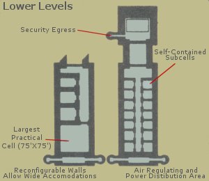 The Vault has been designed and built to be as close to inescapable as humanly possible. Although it would have cost in the trillions to build all of the retaining walls out of Adamantium, the most impervious metal alloy known to man, at least half of the containment area is Adamantium lined, and the rest is constructed of Omnium steel, another highly impervious substance. The Vault has 3 main levels, the uppermost of which is 40 feet beneath the ground. Surrounding the subterranean facility is the natural granite and shale of the mountains, ten feet of concrete, five feet of Omnium steel, and two inches of Adamantium Cells are modular and designed to permit easy installation of special neutralization devices required by the nature of the prisoner's special abilities.