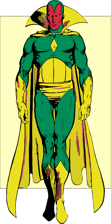 Known Superhuman Powers: The android known as Vision is a synthezoid—an artificial life-form composed of advanced synthetic tissues and circuitry designed to replicate the functions of a living organism while vastly surpassing human physical limits. His body was engineered by Ultron, using highly advanced robotics and solar-energy manipulation systems, and incorporates neural patterns derived from Wonder Man.