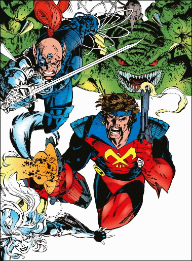 The Starjammers are a small band of space pirates who travel through the Shi'ar Galaxy, plundering Shi'ar starships in order to strike out against the Shi'ar Empire. The leader of the Starjammers is former United States Air Force test pilot Major Christopher Summers, who now calls himself Corsair. He was one of the original four Starjammers, long with Ch'od, Hepzibah, and Raza, each a member of a different alien race native to the Shi'ar Galaxy. Ch'od is a Saurid of the planet Timor of the Varanus System, which is an amphibious humanoid race. Hepzibah is a member of the Mephitisoid race, who were once the Shi'ar principal rivals for control of their galaxy. Today the Mephitisoids are kept virtually under Shi'ar martial law. Since Corsair, who later became Hepzibah's lover, could not pronounce her name (which is expressed by Mephitisoids through a combination of pheromone odors), he dubbed her "Hepzibah" after a beautiful female slink in a comic strip. Raza heritage has yet to be revealed, as have the circumstances under which he was transformed into a cyborg.