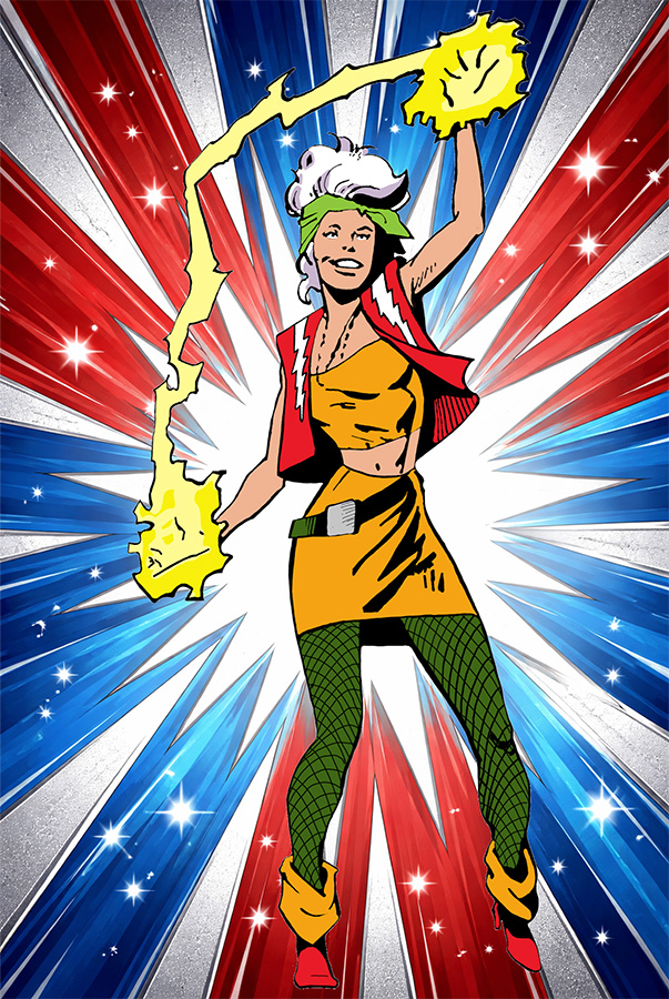 Known Superhuman Powers: Stinger can generate and discharge electrical energy from her body, typically through her hands. These discharges can stun or incapacitate opponents and may be used in rapid succession during combat.